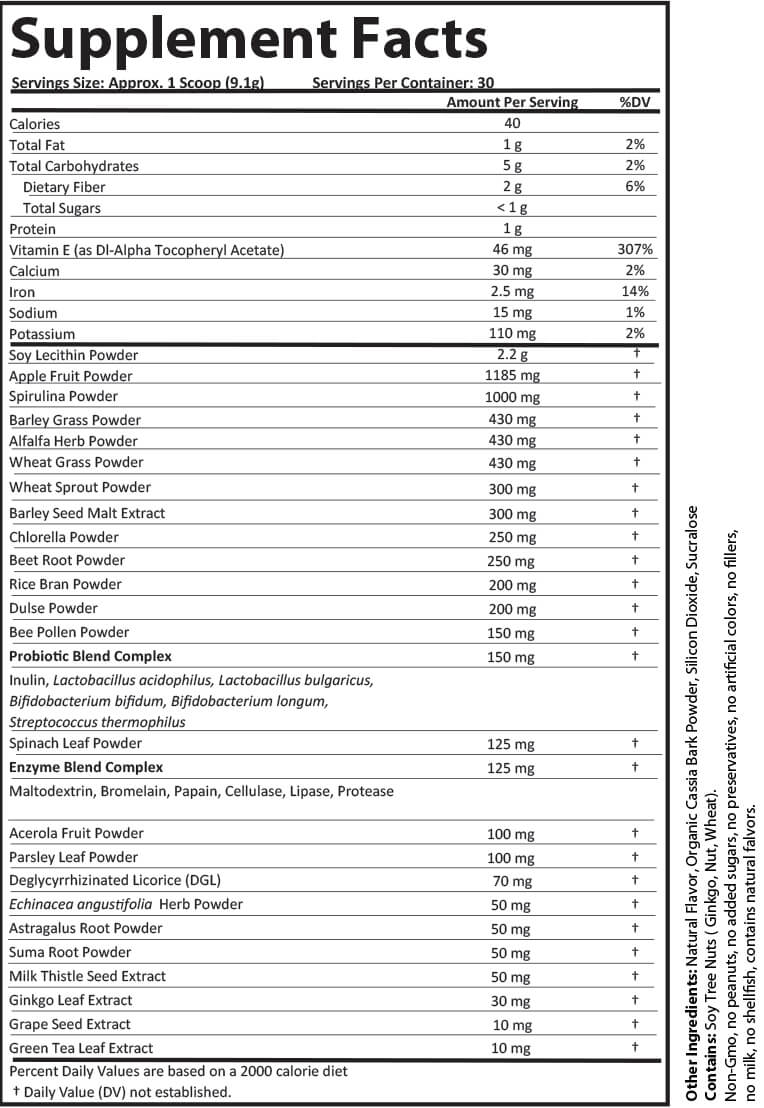 Barley Grass | · Supports digestive health, increased energy, antioxidant support, and detoxification. |